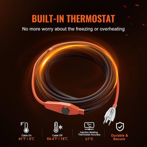 Pipe Heating Cable 18 ft. 7W/ft. Heat Tape for Pipes with Built-in Thermostat, Water Pipe Heat Cable Protects PVC Hose