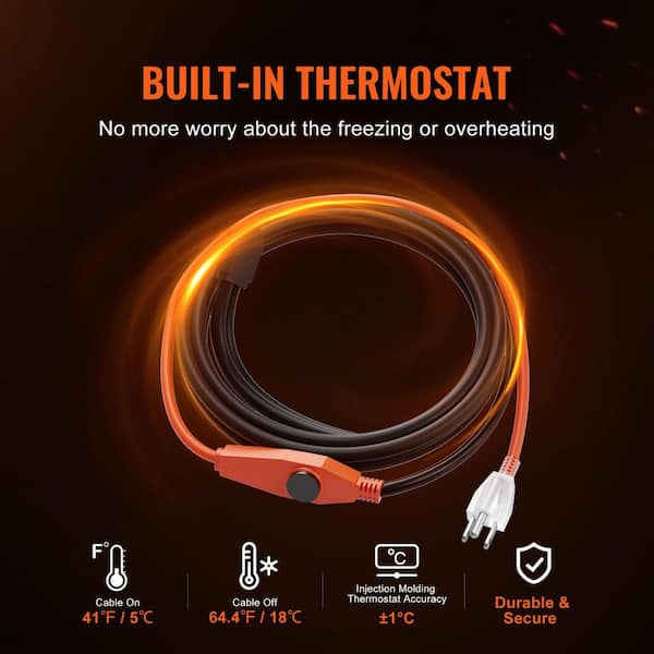 Pipe Heating Cable 6FT. 7W/FT Heat Tape for Pipes with Built-in Thermostat Water Pipe Heat Cable Protects PVC Hose Metal