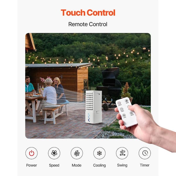 Portable 9L Air Conditioner, 550 CFM Swamp Cooler, 12H Timer, Remote, 3-Speed, 2 Ice Boxes, Quiet, Movable