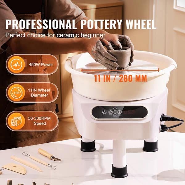 Pottery Wheel, 11 in. Pottery Forming Machine, 450W Electric Wheel, Direct Drive Ceramic Wheel for DIY Art Craft, White