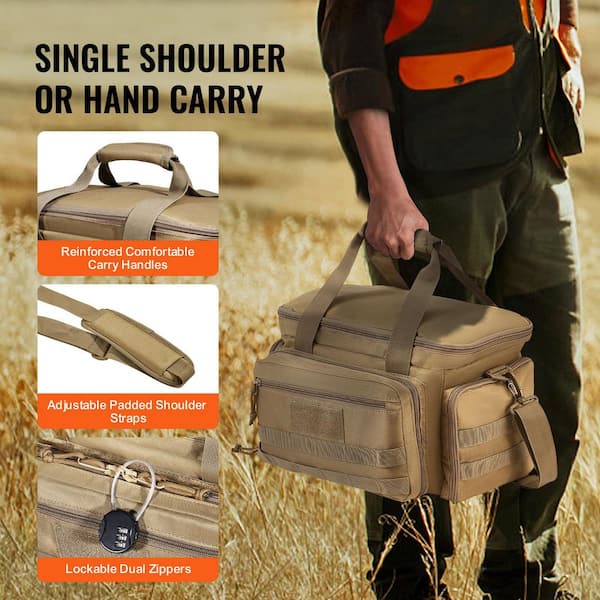Range Bag for 4-Pistols, 14.6 in. Brown Backpack Tactical Gun Range Bag with 3-Detachable Baffles and 6-Magazines
