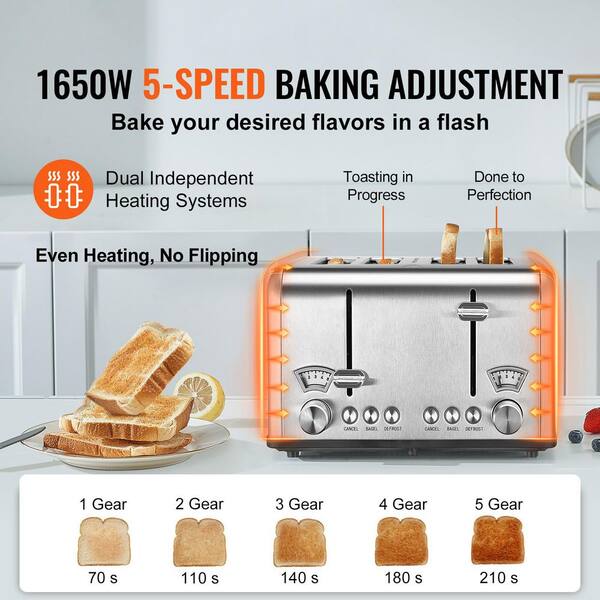 Retro Stainless-Steel Toaster, 4 Slice, 1625 W 1.5 in. Extra Wide Slots Toaster with Removable Crumb Tray Browning Level