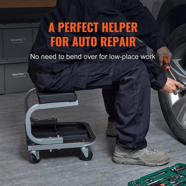 Rolling Creeper Garage/Shop Seat, 250 lbs. Capacity Padded Rolling Workshop Stool with Tool Tray Storage, Black