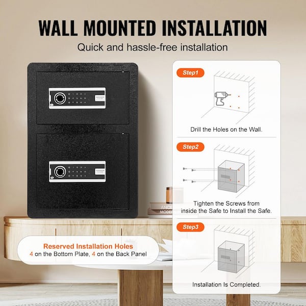 Safe Box, 3.5 cu. ft. Safe Lock Box with Fireproof Bag and 2 Height Adjustable and Removable Divider for Money, Black
