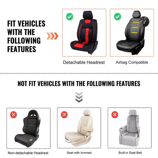 Seat Covers Universal Seat Covers Front Seats 6-Pieces Faux Leather Seat Cover Full Enclosed Design Detachable Headrest