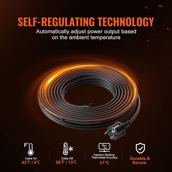 Self-Regulating Pipe Heating Cable, 12 ft. 5W/ft. Heat Tape for Pipes Freeze Protection, Water Pipe Heat Cable
