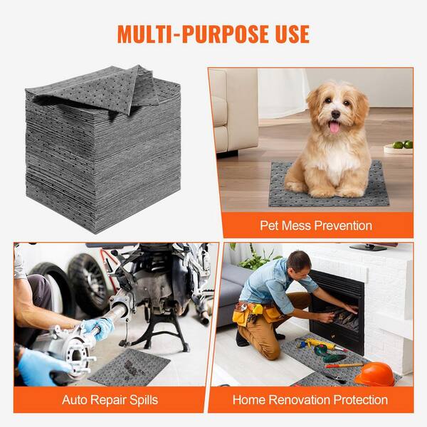 Spill Absorbent Pads, Absorbs up 12 Gal., 13in. L x 10in. W, Polypropylene, for Oil, Water and Other Liquids, 100 Pcs