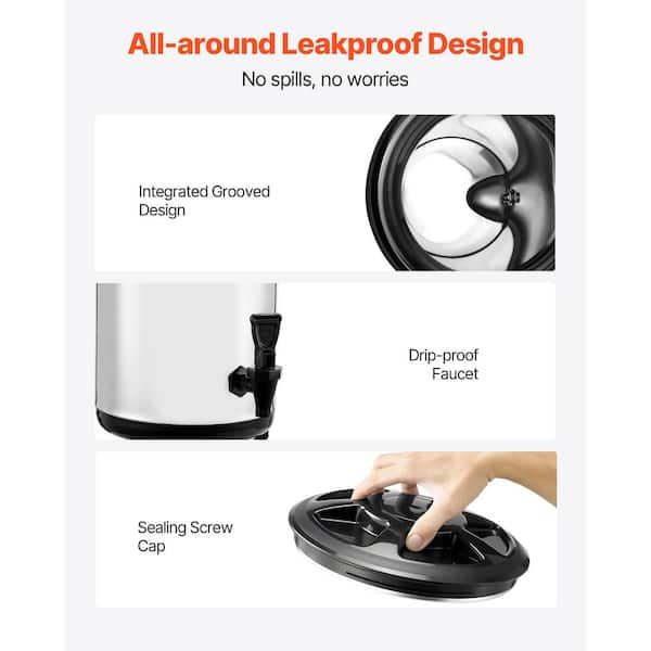 Stainless Steel 2.4 Gal. Insulated Beverage Dispenser, Thermal Drink Server with Spigot and Temp Display for Tea Coffee