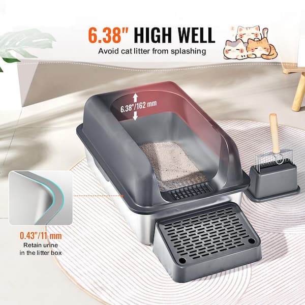 Stainless Steel Cat Litter Box with Lid XL Extra Large Enclosed Cat Litter Box for Big Cats High Sides Metal Litter Box