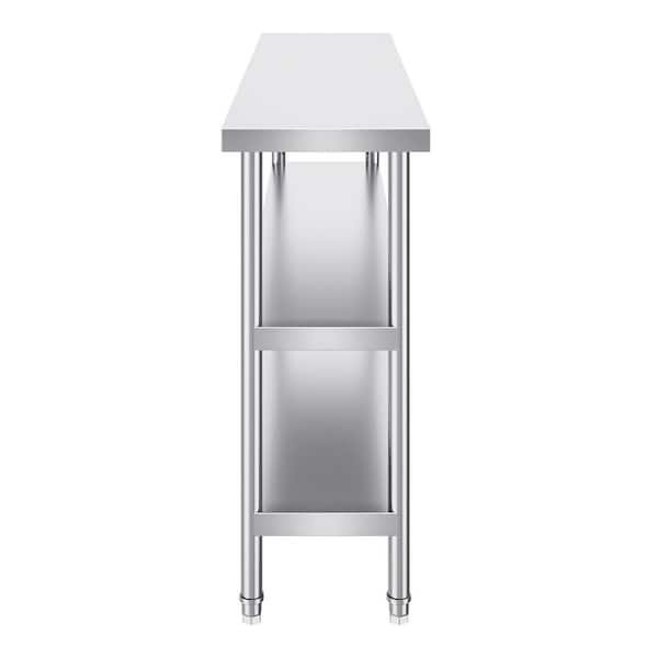 Stainless Steel Food Prep Table, 14 x 60 x 34 in. Commercial Kitchen Worktable, with 2 Adjustable Undershelf, Silver
