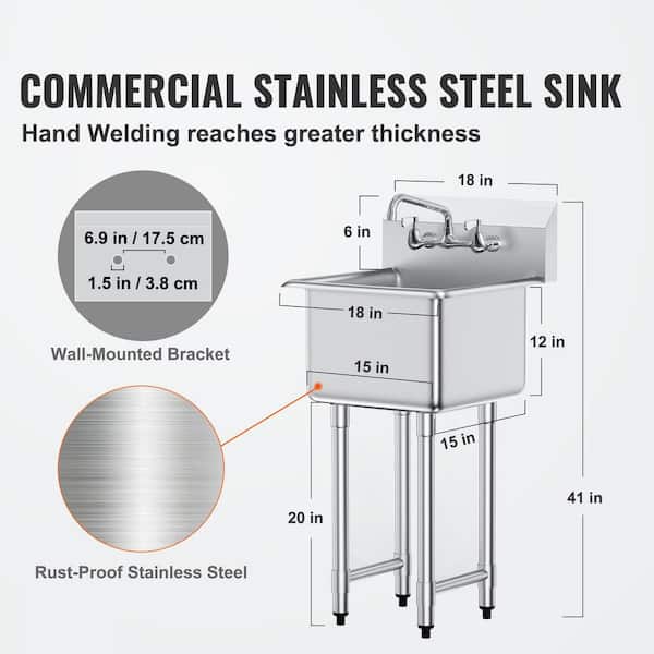 Stainless Steel Prep and Utility Sink, 1 Compartment Free Standing Small Sink Include Faucet and legs