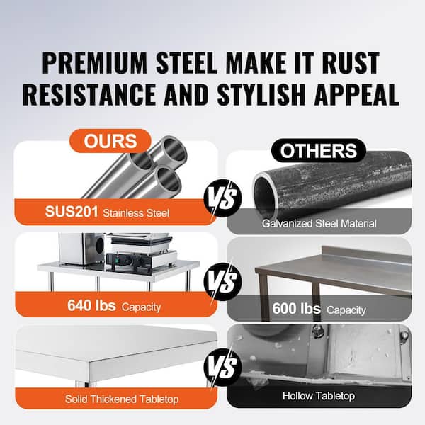 Stainless Steel Work Table 24 x 18 x 38 in. Silver Kitchen Prep Table with 4-Wheels, 3-Adjustable Height Levels