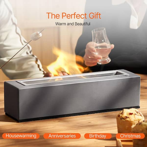 Tabletop Fire Pit Bowl, 15 in. Concrete Tabletop Fireplace, Portable Rubbing Alcohol Burner Smores Maker, for Balcony