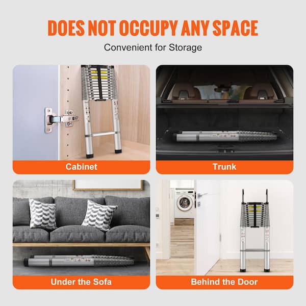 Telescoping Ladder, 18.5 ft. Aluminum One-button Retraction Collapsible Extension Ladder, 400 LBS. Capacity