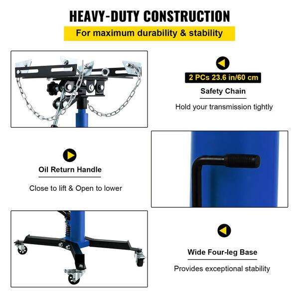 Transmission Jack, 33-67 in. High Lift, 1100 lbs. Hydraulic Telescoping Transmission Jack, 2-Stage Floor Jack Stand