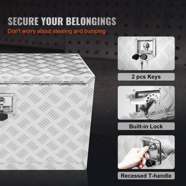 Truck Underbody Storage, 30 x 17 x 18 in. Durable Aluminum Diamond Plate ToolBox with Secure Lock and Keys Weatherproof
