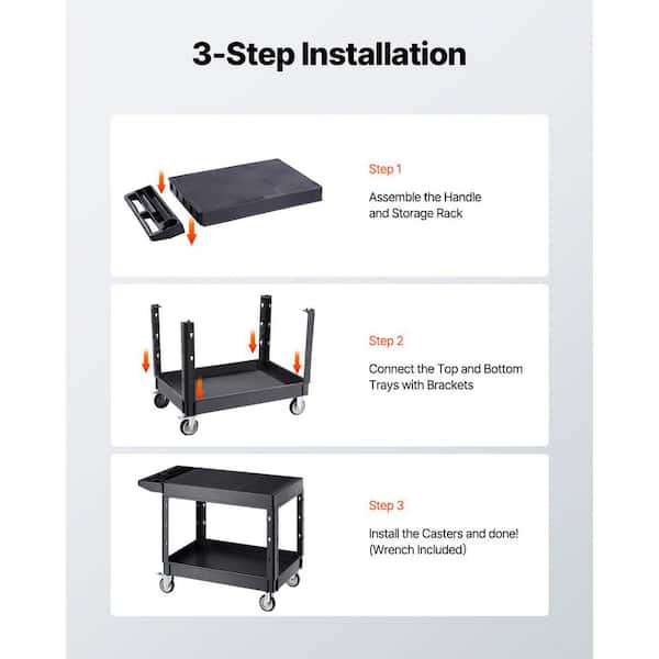 Utility Cart, 550 lbs. Load Capacity, 37 x 25.4 in. Service Cart, 2-Shelf Heavy Duty Plastic Utility Cart with Wheels