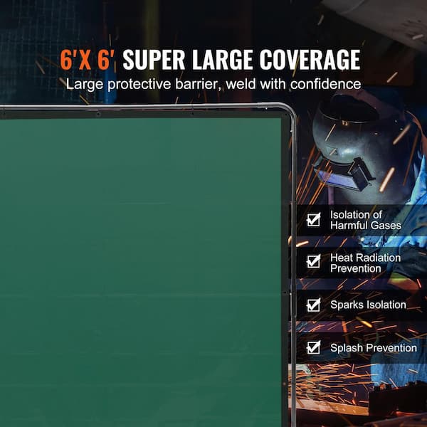 Welding Screen with Frame 6 ft. x 6 ft. Welding Curtain Screen Flame-Resistant Vinyl Welding Protection Screen Green