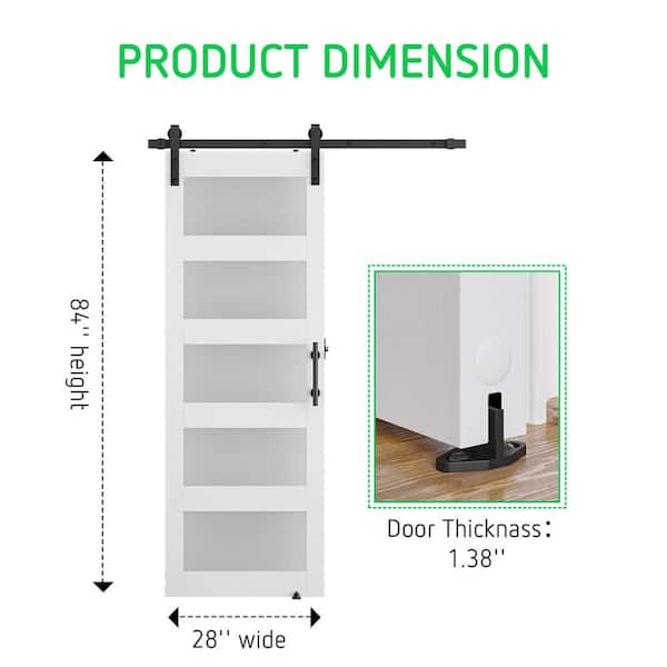28 in. x 84 in. 5-Panel Frosted Glass White Prefinished MDF Interior Sliding Barn Door with Hardware Kit