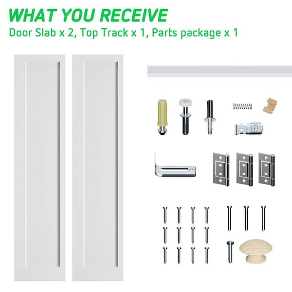 30 in. x 78.4 in. 1-Panel Hollow Core White Primed Molded Composite MDF Closet Bi-Fold Door with Hardware Kit