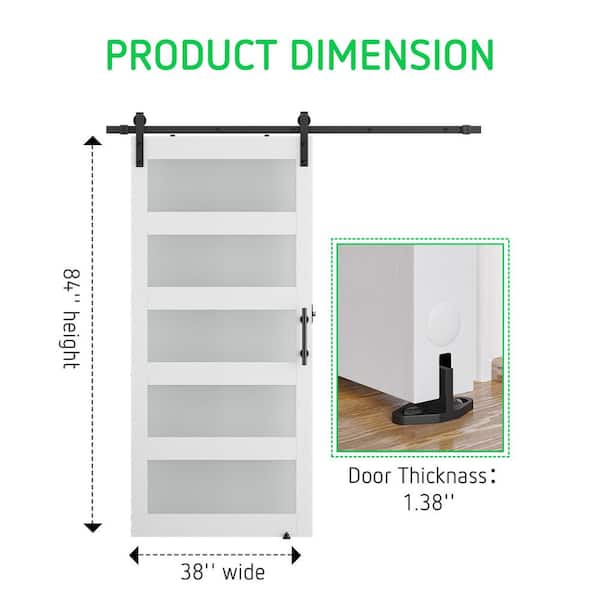 38 in. x 84 in. 5-Panel Frosted Glass White Prefinished MDF Interior Sliding Barn Door with Hardware Kit