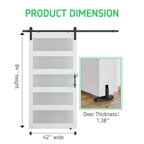 42 in. x 84 in. 5-Panel Frosted Glass White Prefinished MDF Interior Sliding Barn Door with Hardware Kit