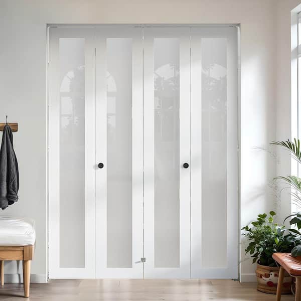72 in. x 77.75 in. (Double 36 in. ) 1-Lite Frosted Glass Solid Core White MDF Closet Bi-fold Door with Hardware Kit
