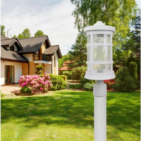 Artisan Cylinder 1-Light White Hardwired Outdoor Weather Resistant Plastic Post Light with Clear Lens No Bulb Included