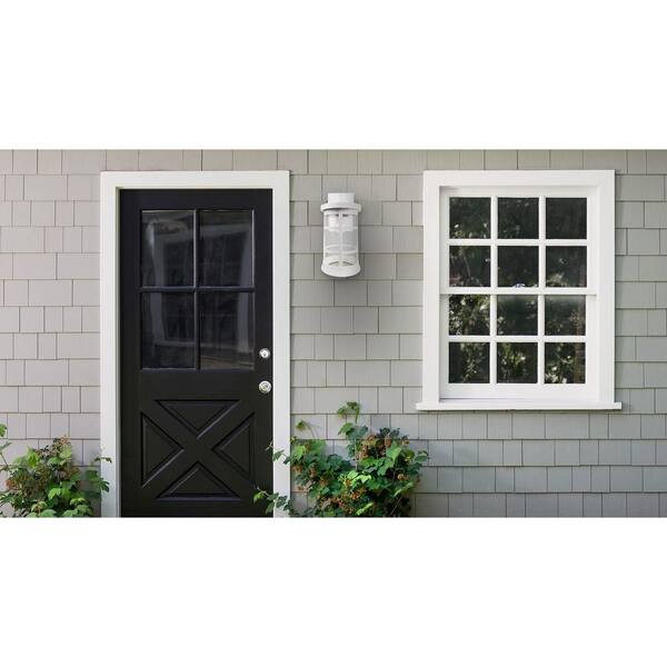 Artisan Large Cylinder 15.25 in. White Composite Outdoor Hardwired Lantern Sconce with Clear Diffuser No Bulb Included