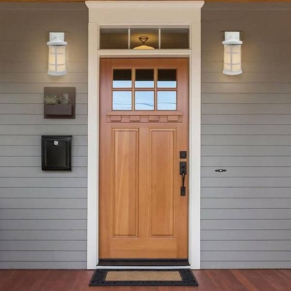 Artisan Large Cylinder 15.25 in. White Composite Outdoor Hardwired Lantern Sconce with Frosted Diffuser 4000K LED