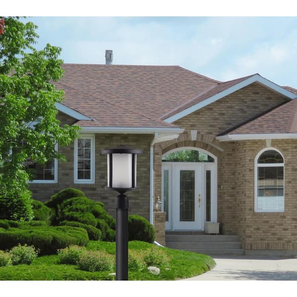 Artisan Round 1-Light Black Hardwired Outdoor Weather Resistant Plastic Post Light with Frosted Diffuser 4000K LED