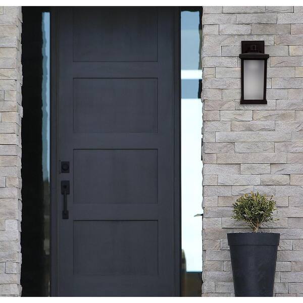 Artisan Small Square 11.60 in. Black Composite Outdoor Hardwired Lantern Sconce with Frosted Diffuser 4000K LED