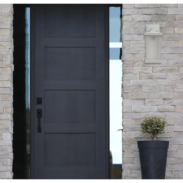 Artisan Small Square 11.60 in. White Composite Outdoor Hardwired Lantern Sconce with Frosted Diffuser 4000K LED