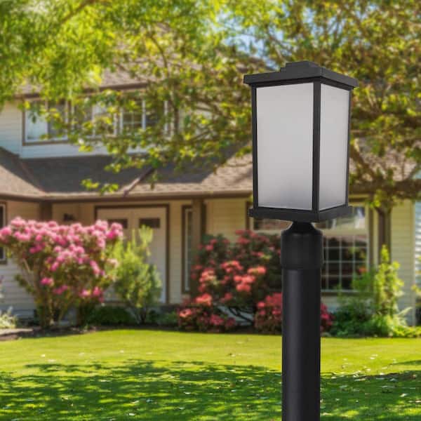 Artisan Square 1-Light Black Hardwired Outdoor Weather Resistant Plastic Post Light with Frosted Diffuser 3000K LED