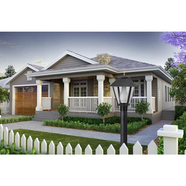 Colonial 1-Light Black Hardwired Weather Resistant Plastic Outdoor Post Light with 3000K LED Bulb Clear Beveled Diffuser