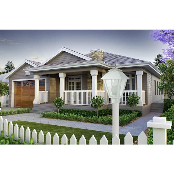 Colonial 1-Light White Hardwired Weather Resistant Plastic Outdoor Post Light with 4000K LED Bulb Clear Beveled Diffuser