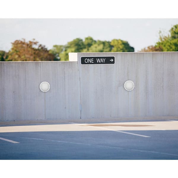 Nautical Round White Outdoor Hardwired Bulkhead Sconce with 3000K LED Bulb and Grid-Style Diffuser Cage