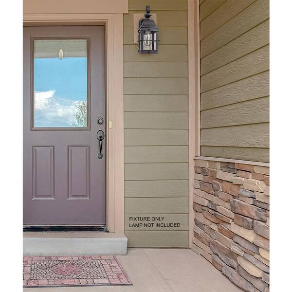New Town 15 in. Black Composite Outdoor Hardwired Lantern Sconce with Clear Diffuser No Bulb Included