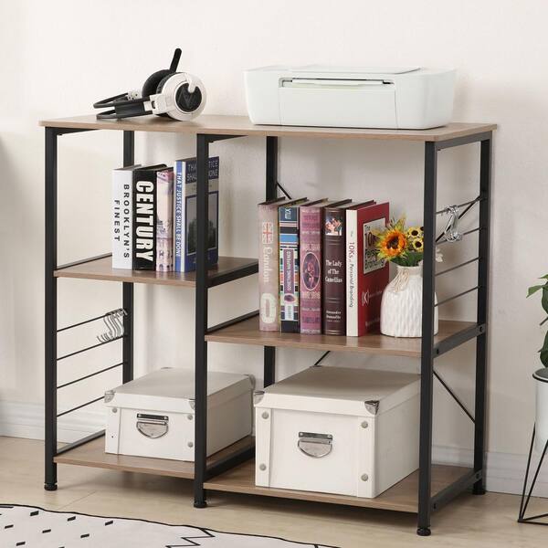 35.4 in. Walnut Baker's Rack Utility Double 3-Tier Microwave Stand