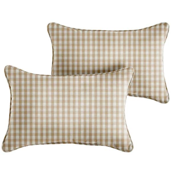 Beige/White Check Rectangular Outdoor Corded Lumbar Pillows (2-Pack)