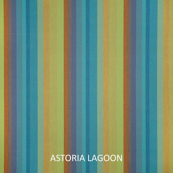 Sunbrella Blue Stripe with Peacock Blue Rectangular Outdoor Corded Lumbar Pillows (2-Pack)