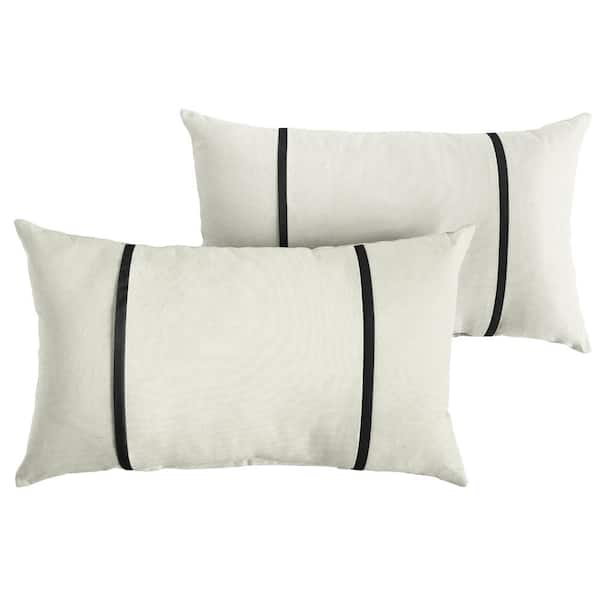 Sunbrella Ivory with Black Rectangular Outdoor Knife Edge Lumbar Pillows (2-Pack)