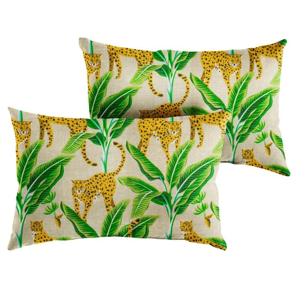 Yellow/Green Rectangular Outdoor Knife Edge Lumbar Pillows (2-Pack)