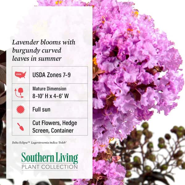 2 Gal. Delta Eclipse Crape Myrtle, Live Deciduous Shrub/Tree, Burgundy Foliage, Lavender Blooming