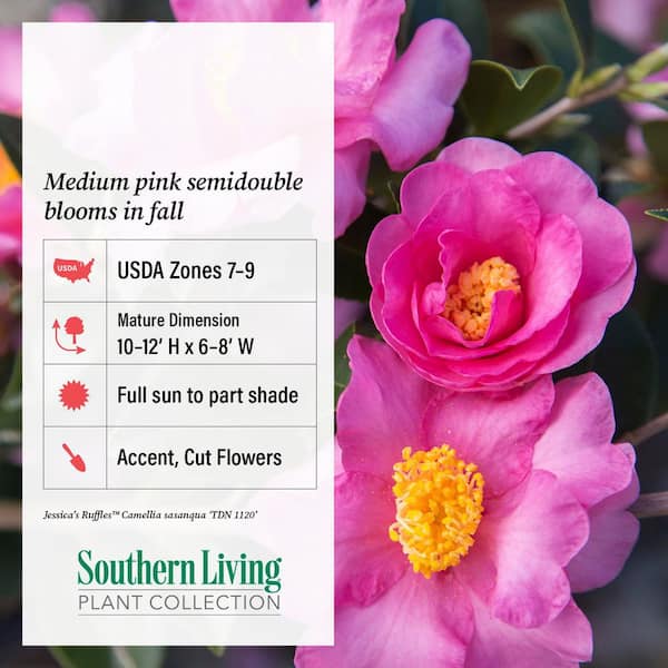 2 Gal. Jessicas Ruffles Camellia(sasanqua) - Evergreen Shrub with Pink Semi-Double Blooms