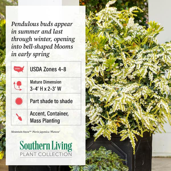 Heat tolerant Pieris with white blooms from Spring to Fall