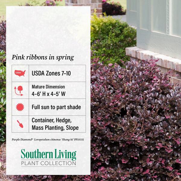 5 Gal. Purple Diamond Semi-Dwarf Loropetalum, Evergreen Shrub with Purple Foliage, Pink Ribbon Blooms