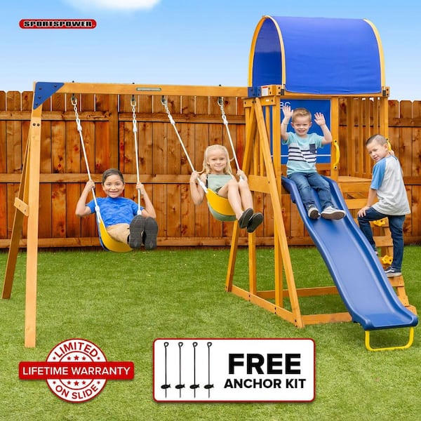 Addison Wooden Outdoor Playset with Swings, Heavy Duty Double A-Frame, and Blow Molded Slide