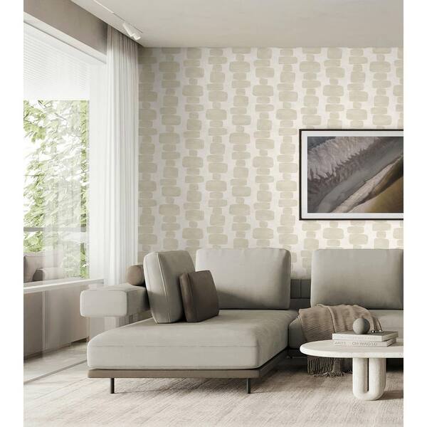 Beige Stripe Block Vinyl Peel and Stick Wallpaper Roll (30.75 sq. ft.)