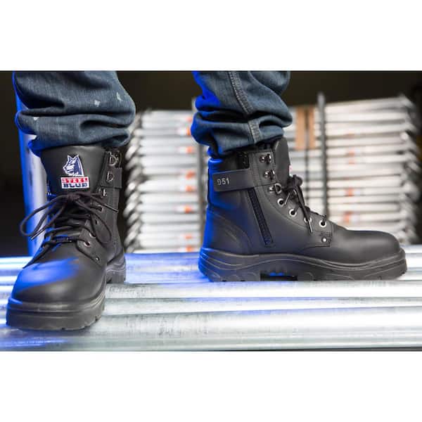 Men's Argyle Zip 6 inch Lace Up Work Boots - Steel Toe - Black Size 9(W)